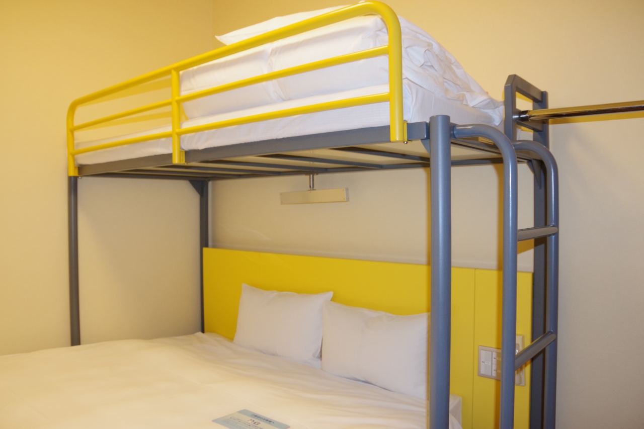 就寝後、冷蔵庫の音や、その他の機械の音が耳について、安眠出来なかったのが、大きな減点です。どんなに設備が良くても、ぐっすり眠れなければ意味がありません。大きなベッドは、ゆったりできて良かったです。このベッド、大きなダブルベッドの上に、2階建てシングルベッドがありました。子供連れにはとてもいいと思います。ベッドが大きい分、部屋のスペースが狭いので、3人で部屋を使うと窮屈かも。