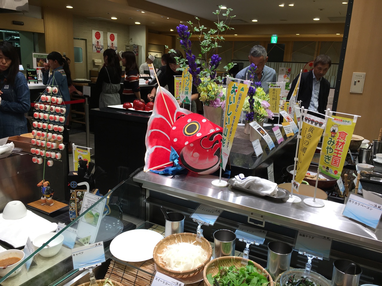 家族が誕生日のお祝いにと、「浜風」を予約してくれました。東北の味覚を存分に楽しめるディナーバイキングで、和牛の炙り鮨、秋田名物・はたはた唐揚げ、きりたんぽ鍋、比内地鶏炊き込みご飯、東北のオススメ鮮魚の鮨など、4100円でおなかいっぱいでした。