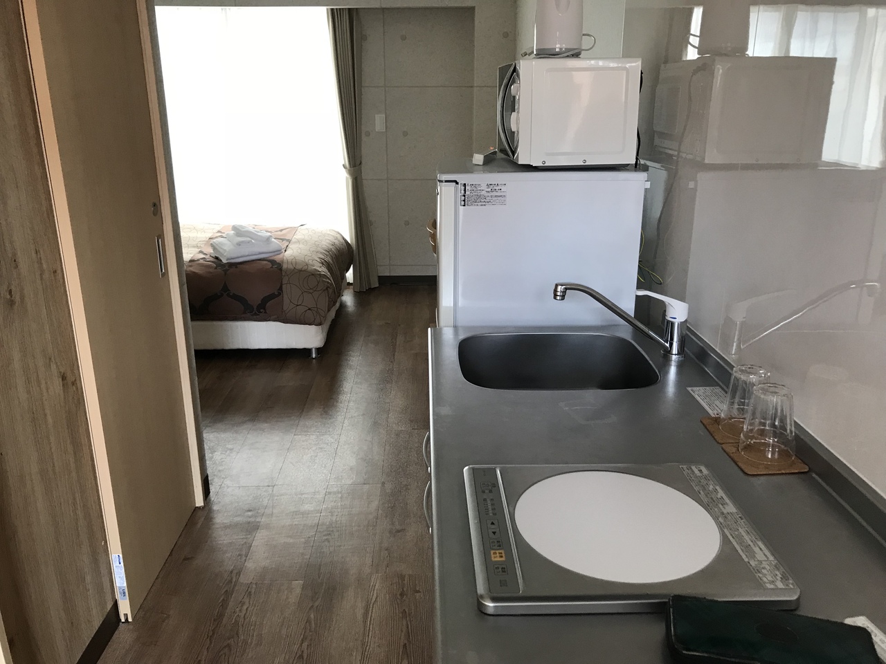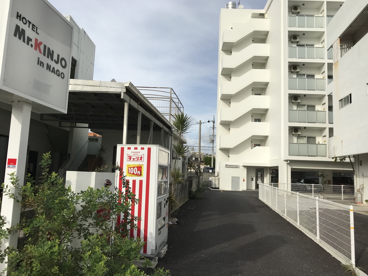 名護市役所の近くにあります。有料駐車場〈一泊1000円〉あり。2階にフロントがあります。シングルの部屋に宿泊しましたが、部屋はゆったり広めで、テレビ、ミニキッチン、大きめの冷蔵庫、電子レンジ、電子ポット、洗濯機、ドライヤー、歯ブラシ、髭剃り、ブラシなど完備していました。風呂トイレはセパレート、ベランダもありました。wifiあり。徒歩圏内すぐにコンビニや飲食街があります。 コスパがかなり高いと思いました。おすすめです!