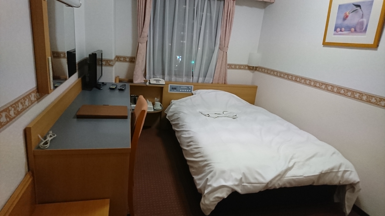 小郡は駅を挟んで南北に分かれており、ホテルは在来線乗り場に近い北側に位置している。南側のほうが飲み屋が多いので、少し寂しい感じもする場所だ。ホテル自体は安く居心地は良い。駅で南北の通行が可能になり、今後発展する可能性を秘めているエリア