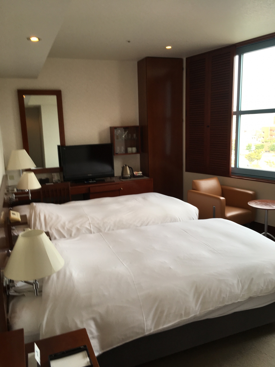 JR門司港駅から300m、関門海峡に面した素晴らしい立地です。建物も世界的な建築家アルド・ロッシ設計、内装デザインは、内田繁でいずれも大変素晴らしいものです。今回は、ツインのシングルユースを格安で利用できました。陸側の7階の一番奥の部屋で海峡は見えませんが、門司港レトロの船溜が一望できる部屋でした。フロントスタッフの対応も丁寧で部屋の内装や設備、ベッドなども素晴らしく文句なしでした。ところが、やはり1998年竣工なので設備が古いせいか、シャワーのお湯がなかなか温度が上がらずかつ量も少なかったです。また端の部屋のためかもしれませんが、無線WIFIの電波が弱く接続速度が遅かったです。隣接するオフィスビルのホテル客室へのリニューアル工事中とのことでしたので、これにあわせて既存の客室の問題が改善されることを期待しています。