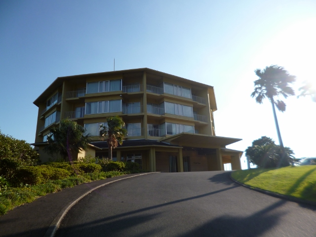 こちらは温泉がとてもよかったです。地下にあるのですが、露天風呂もあり、化粧水みたいなしっとりとする感じのお湯です。窓が開放的に大きくなっていて、日没前にいったら、ものすごいまぶしいぐらい海がきれいでした。日がまぶしくてみれないぐらい良い天気だったので。また日没の景色がとてもきれいです。部屋窓をあけてベランダからもみえます。