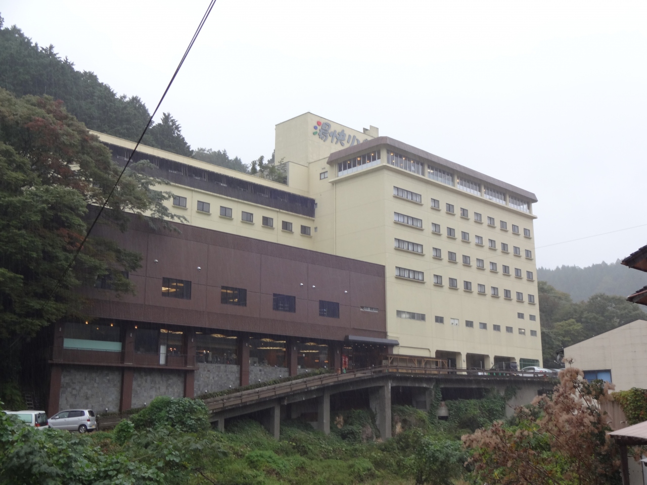 お風呂は大浴場と露天風呂が離れていて、露天風呂は階段を90段ほど上らないといけないのでご高齢の方は無理かもしれません。屋根なしなので雨が降っているときは女性用にはヘアーキャップが、男性用には頭にかぶる笠が置いてありました。大浴場は浴場の大きさが全く違います。夜は女性が大きい方(浴槽の中にベンチがあります)、朝は男性が大きい方と入れ替え制。チラシのクーポンで「飲み放題無料」と「おみやげ1人500円引き」だったのでお得感がありました。
