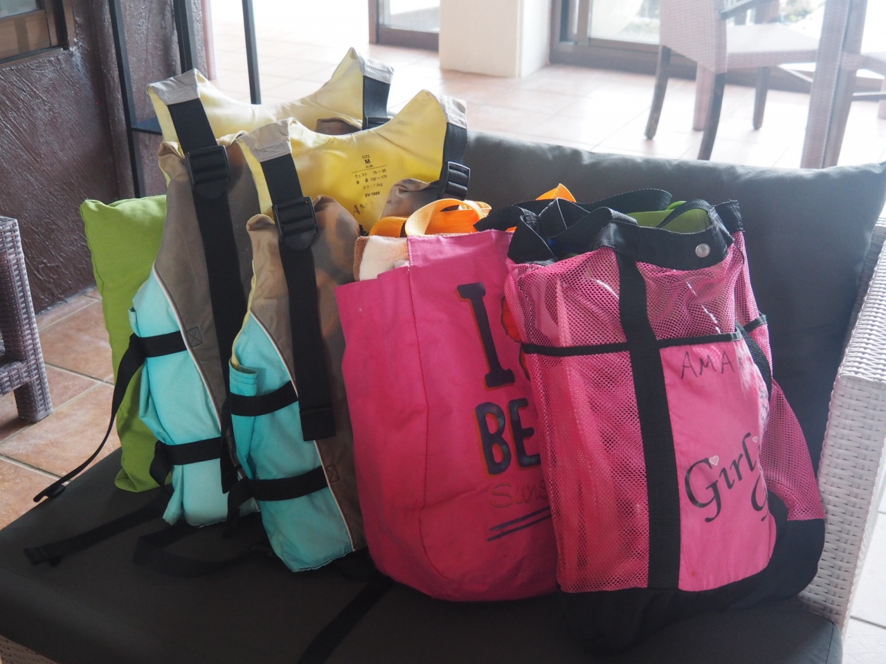 シュノーケリングセットやタオル、ライフベスト、下に敷くシート前用意してくれます。