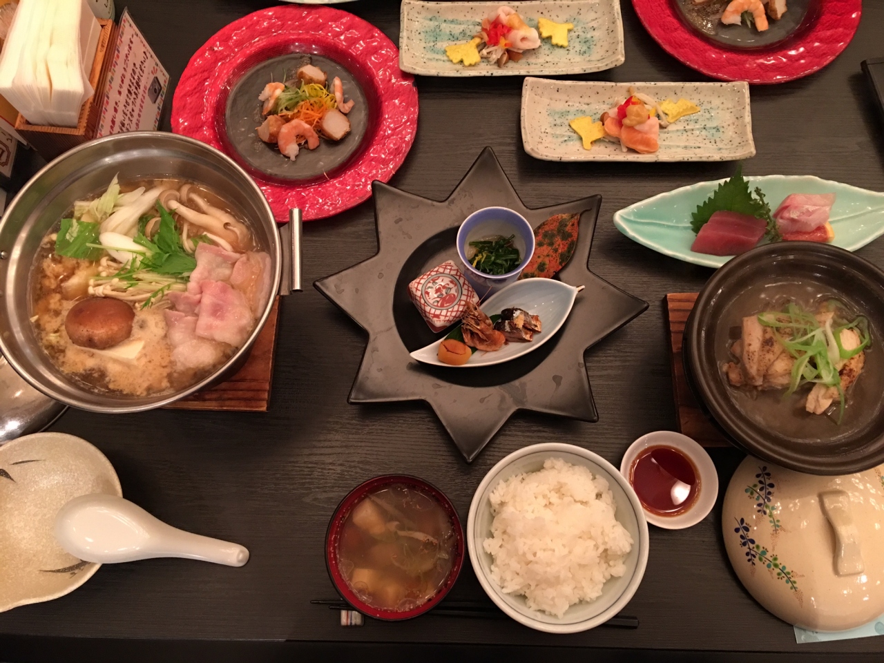 食事ですが、スタンダードな「さとやま会席」のプランにしましたが、ハーフビュッフェが付いていたので、お腹いっぱいになりました~(^^)