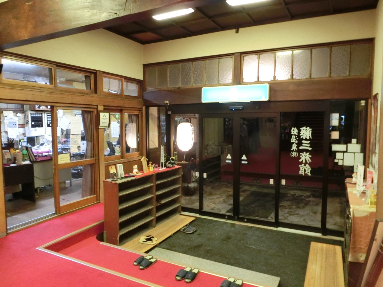 白猿の湯はたったまま入る、レトロな感じのお風呂で、じわじわと体が温まります。