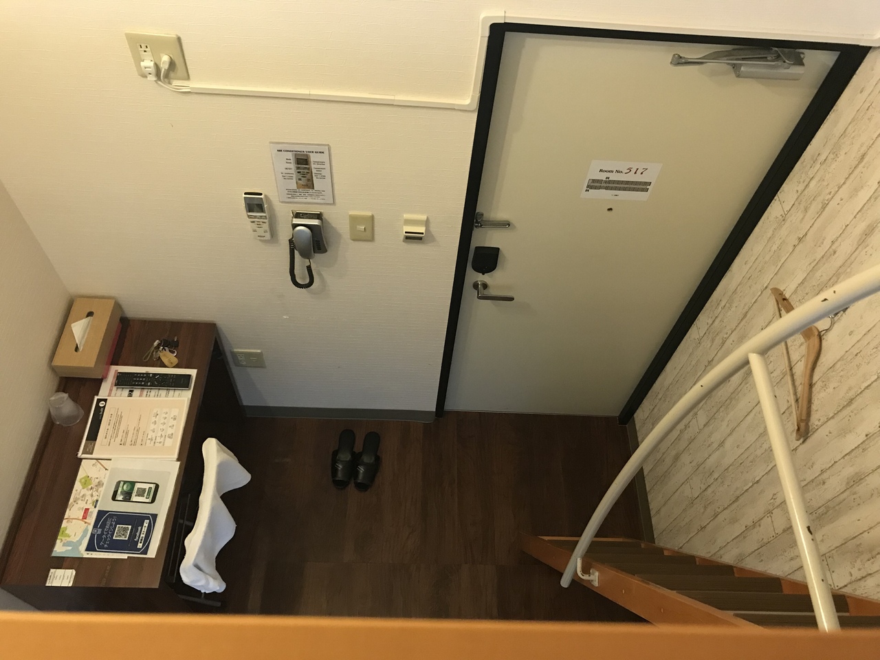 部屋はロフト式で、最初に入ると狭さに驚きますが、コンパクトにまとまっているので次第に慣れました。
