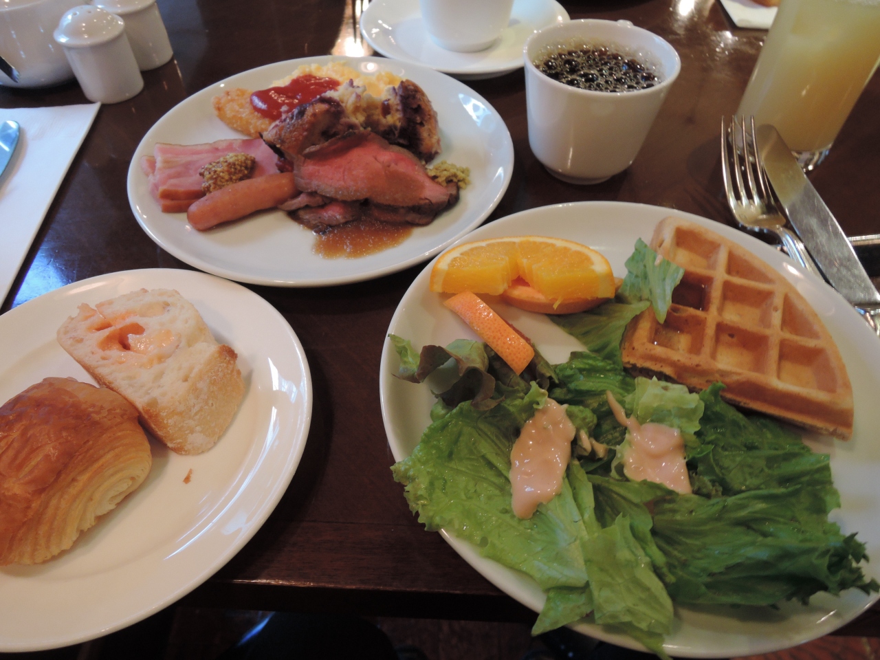 朝からロースト・ビーフや明太子ご飯を食べられて大満足です!