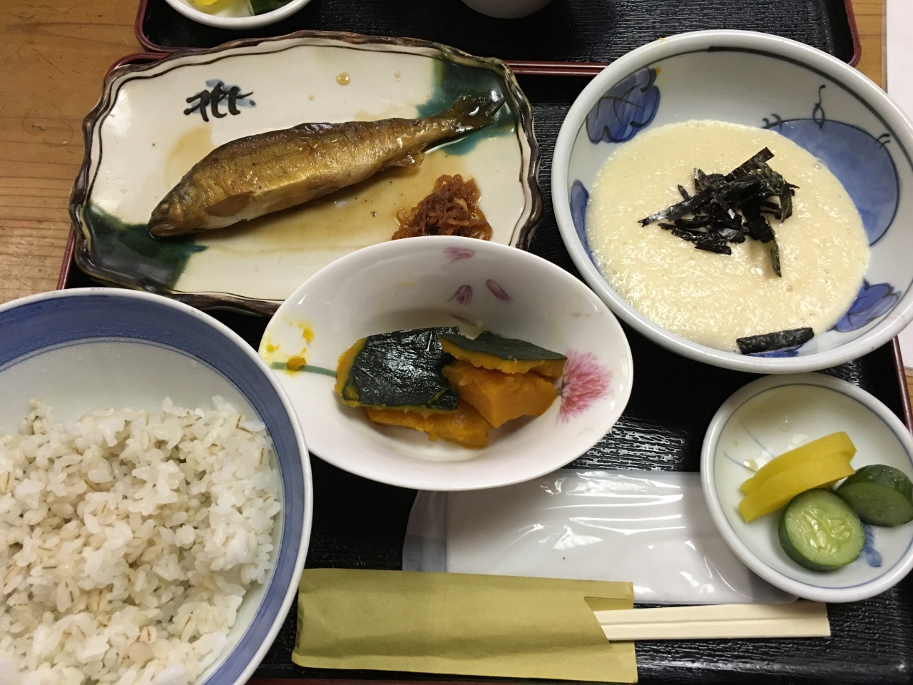 いくつかあるメニューの中からお目当てのハーぶ~丼と、煮鮎と麦とろの定食を注文しました。