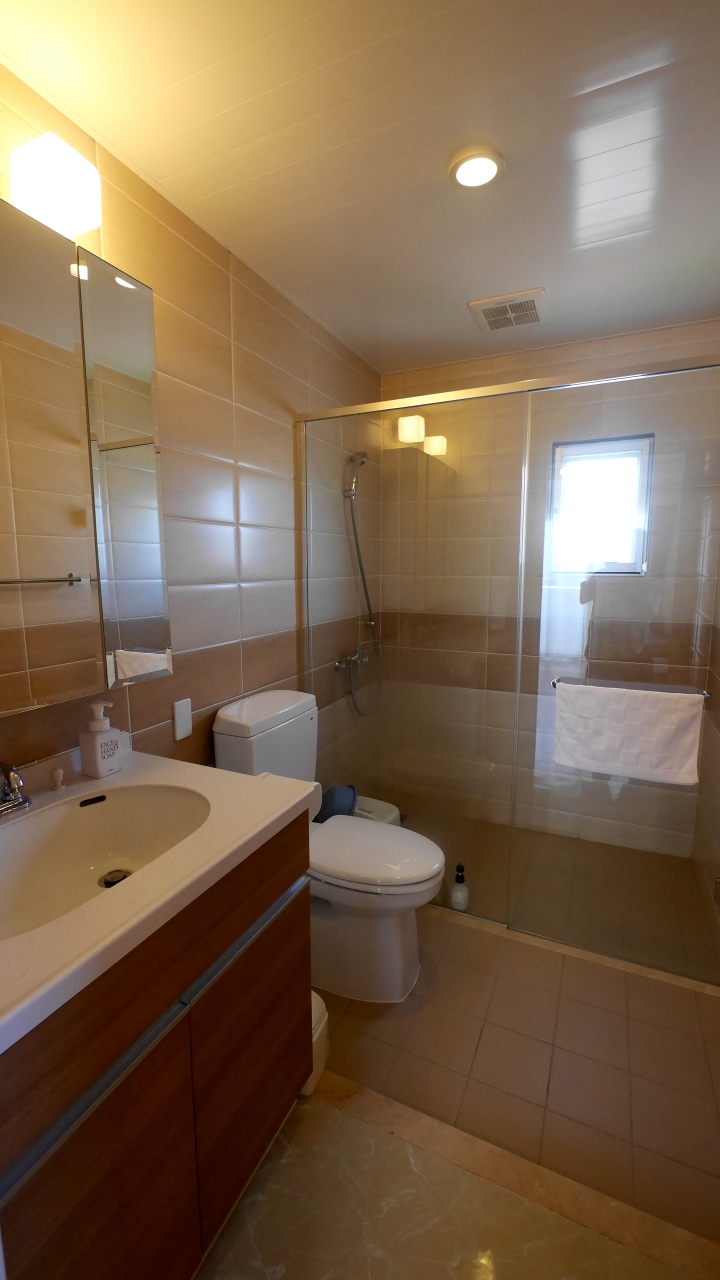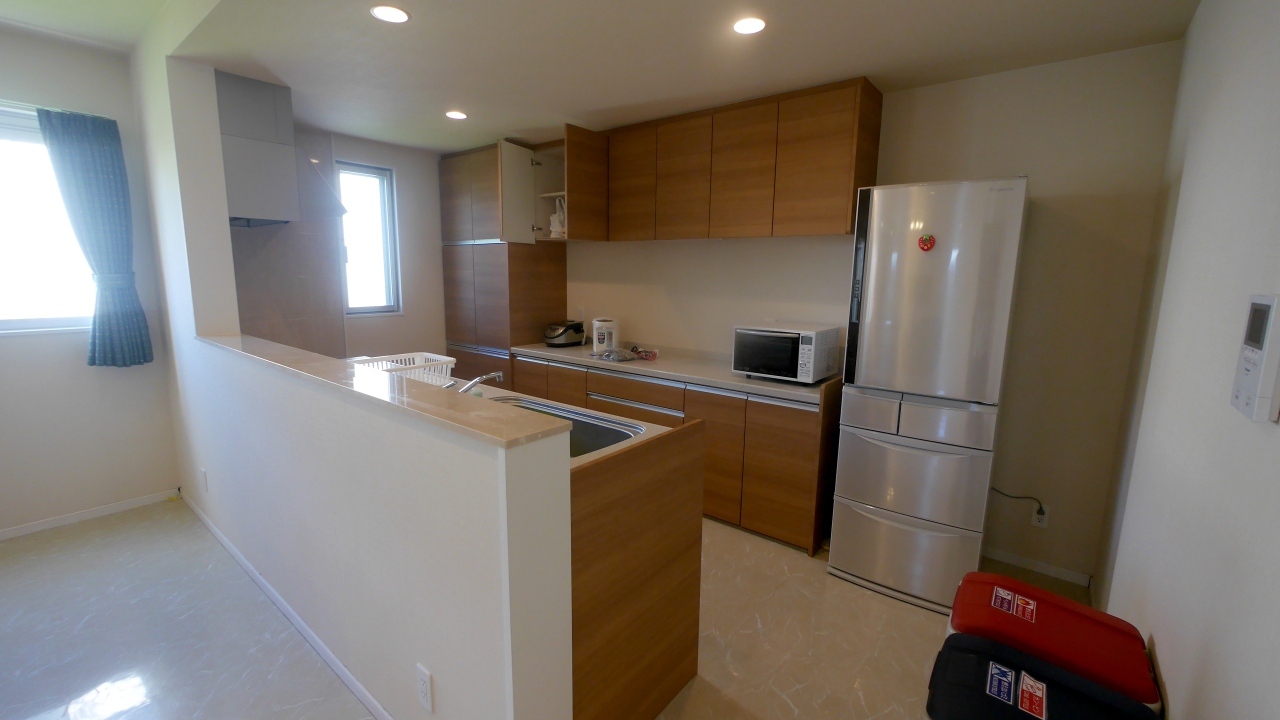 シーズン42000円とくそ高いが,4ベッドルーム(3+2+2+2)とダイニング,リビング,1バス,1シャワー,3トイレがあり清潔で使いやすかった.ただまだ新築間もないためか同じ会社の跡から宿泊する「かふーや宮城」に比べ,調理用具と食器がやや少なく不便だった.二家族とかグループで泊まるにはいいが眺望は良くない