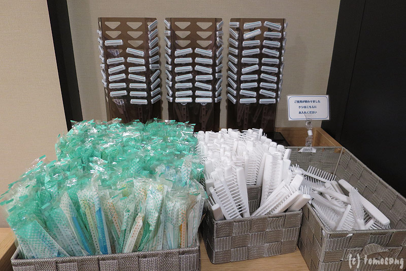 風呂は大浴場とまでは言わないけど、大人数人が寝そべって浸かれる程度の大きさは有る。洗濯機(有料)も設置されている。ひげそり・くし・歯ブラシも用意されている。