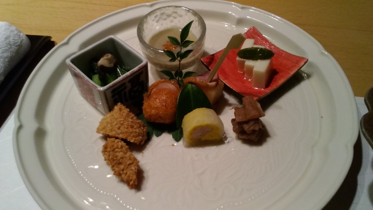 食事はアップデートして、アワビ・伊勢海老・金目鯛を堪能しました。アワビはソテーにする前に見せてくれたり、盛り付けや器が凝っていたりとプレゼンテーションがよかったです。お刺身は切り身が小さいと思いました。