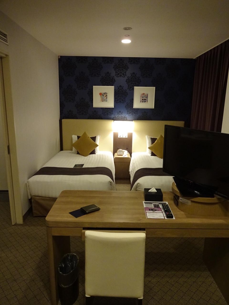 デラックスルームは17階にあり、部屋によってはオーシャンビューになります。今回泊まった部屋は北向きに窓があり、ちょっと頑張れば軍艦を見ることができました。