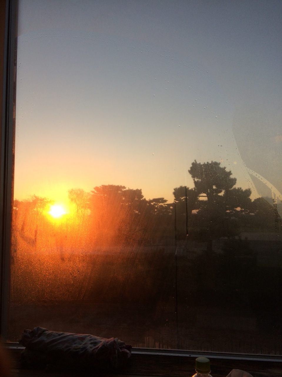 部屋の窓から観た松島湾に昇る旭日はなかなか素敵でした。