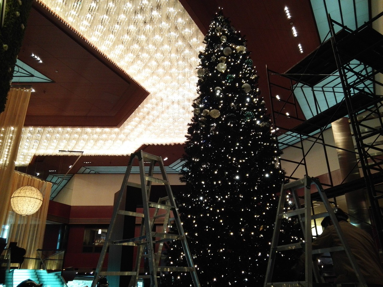 11/24、クリスマスツリーを楽しみに訪問しましたが、クリスマスイブのちょうど一ヶ月前に飾りつけをするのか、ツリーにはしごをかけてまさに飾りつけの最中でした。