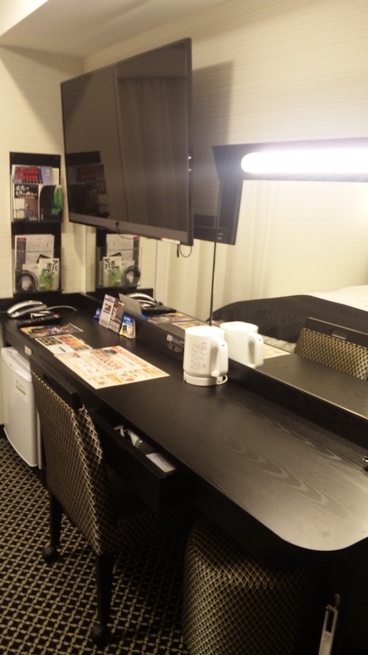 朝食会場と大浴場は歩いて40秒のアパホテル〈名古屋栄〉に行かなければなりませんが、そこに拘らなければ割安に泊まれる宿泊特化型のアパホテルです。新しいので電源も複数個所に豊富でWi-fiも電波が太くて安定してます。