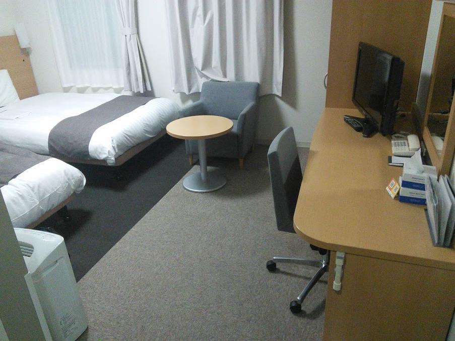 金曜日の宿泊ということで、ツインルームを二部屋予約したが一人7500円と平日に比べると高めだった。それと駐車場がタワー式となり、私の車の車幅が1800mmと広いので、果たして入るのかが心配だった。またタワーは途中で出し入れしにくいし、荷物を車に取りに行くことも簡単ではないうえ、料金も一晩1300円と高めの設定である。夜の8時過ぎに到着してまずタワー駐車場に行ってみた。駐車場はホテルの裏の通りだが、北からの一方通行になっている。車幅1800mmはぎりぎりセーフだという。しかしぎりぎりは嫌なので、入れるのをやめて近くのコインパーキングに入れた。「三井リパーク大手町3丁目」で夜の8時から翌朝8時までで400円と格安だ。誰でも入れる場所なので、夜中にいたずらや車上狙いが心配だったが、とりあえず夕食の間だけでもというつもりで入れておいた。近所のお好み焼き屋で夕食にしようとしたが満席で入れなかったため、一旦車に戻り、荷物を出してホテルへのチェックインを先に行った。結局、車はそのまま朝までコインパーキングに置いたままにした。後で車に荷物を取りに行く必要ができたので、タワーに入れなくてよかった。しかし、翌朝10時前まで置いたので、30分200円×4が加算されて駐車料金は1200円になった。朝になって、ホテルの奥100mの「三井リパーク大手町3丁目第5」の手前の鍵の手の空き地(グーグルマップでは富士ネームプレート製作所のビルが写っていて取り壊した後が駐車場になった)に30分150円、一晩300円の格安駐車場を見つけた。ここなら8時までに出れば300円、10時まで置いても900円で済んだ。