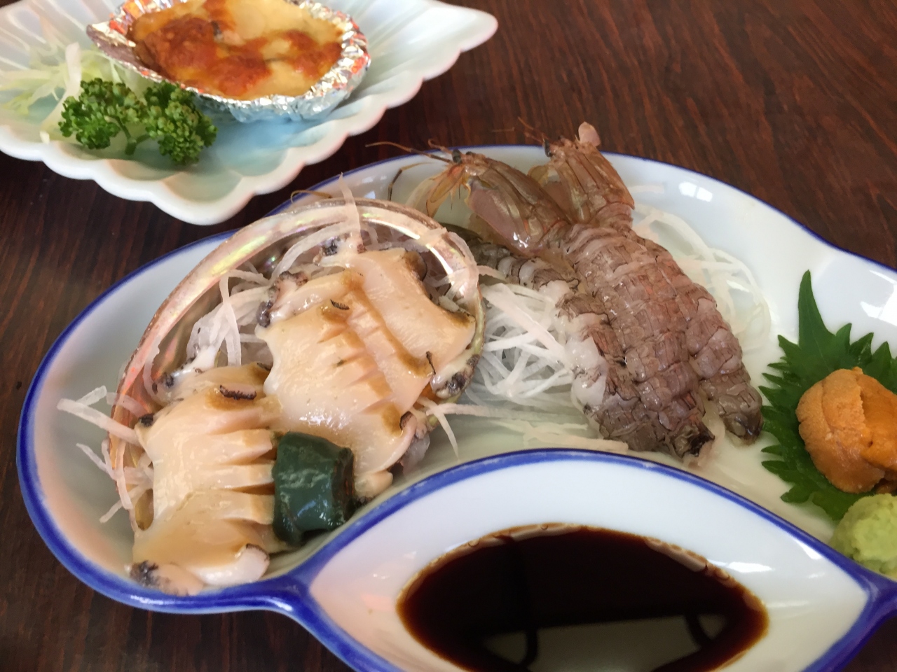 鳥羽から答志島桃取航路で半時間ほど。港には迎えに来てくれるが、歩いても10分ほど。海の側の民宿です。ここの食事が良くて何度も泊まりました。あわびづくしは刺身、残酷焼き、グラタンなど7種ほど。それに刺身や天ぷら煮魚など答志島ならではの魚のオンパレードで満腹。ご飯に手が出ないほどです。