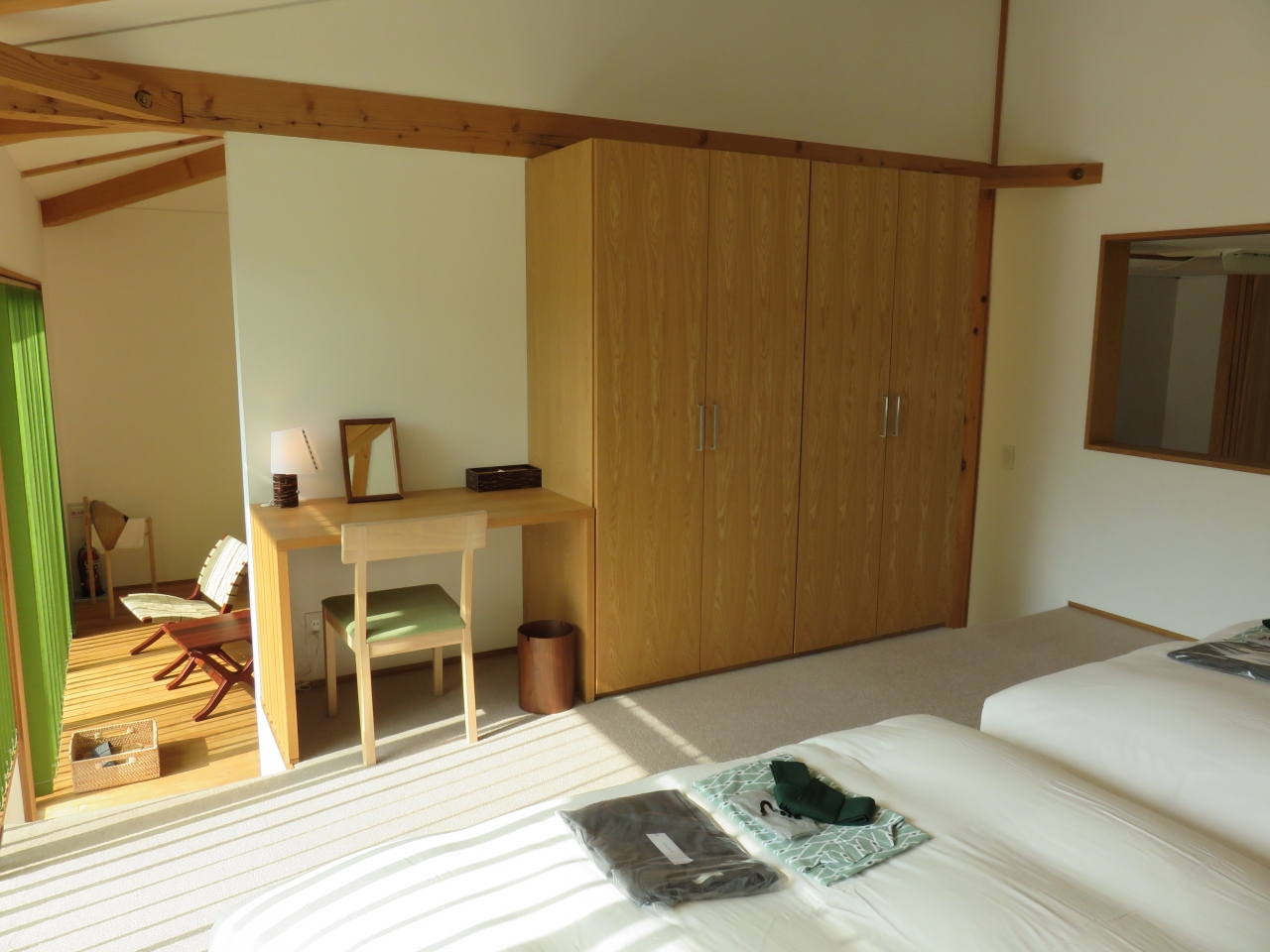 ベッドルームはリビングや和室よりも少し高くなっており、ベッドルームから和室を見降ろす事が出来、遊び心のある間取りになっています。