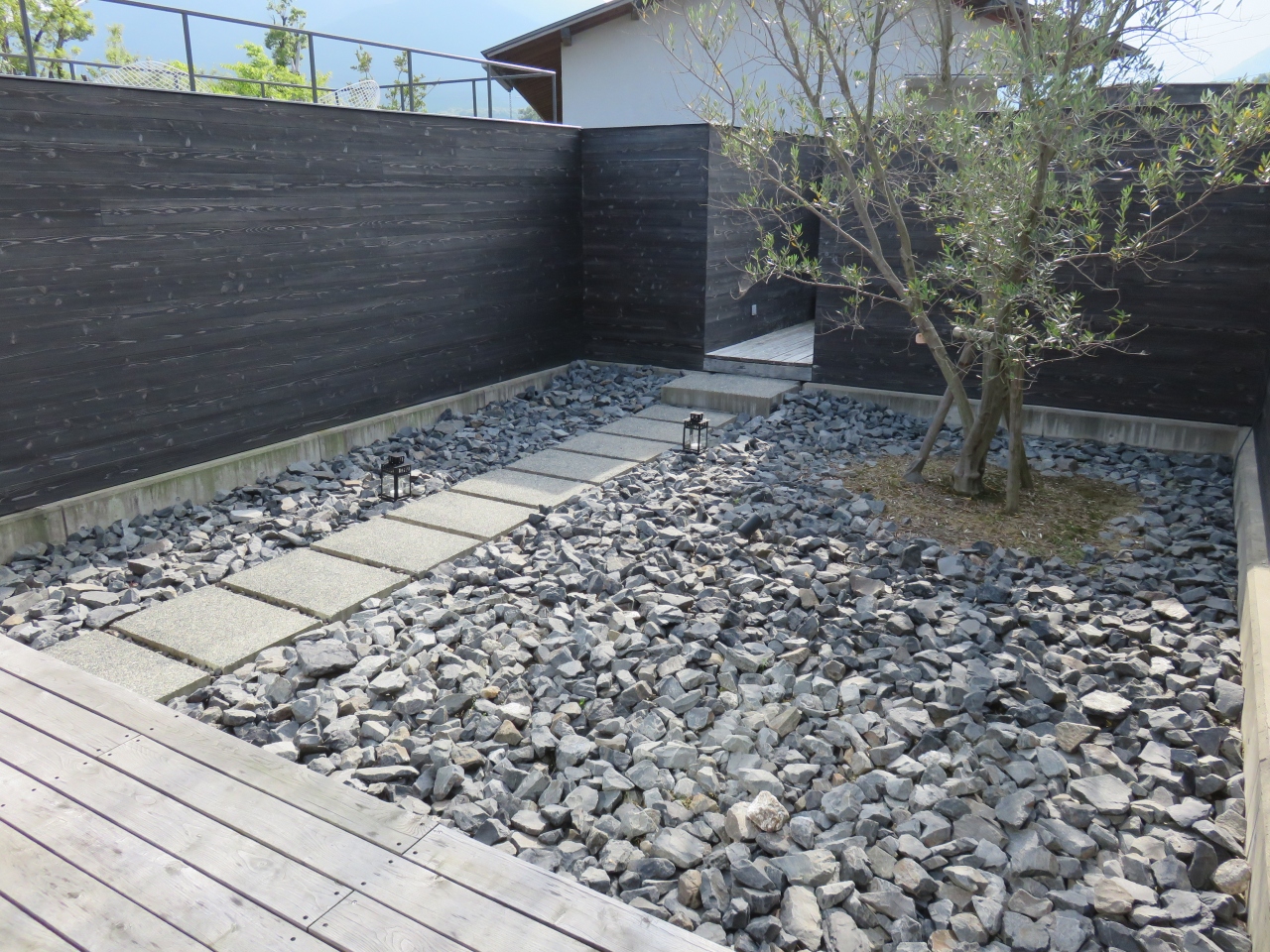 栗専用のお庭は、下のお庭、階段を上がったテラス、露天風呂があります。