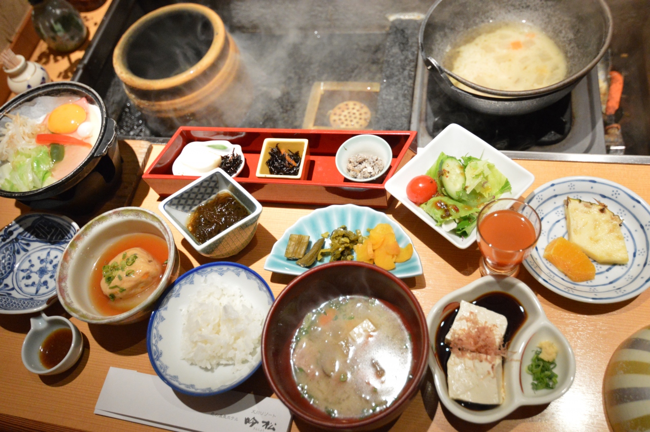 食事をする個室にはテーブル中央に温泉が流れこんでおり、そこで湯豆腐や温泉卵を作ってもらえ、さつまあげを目の前で揚げてくれました。