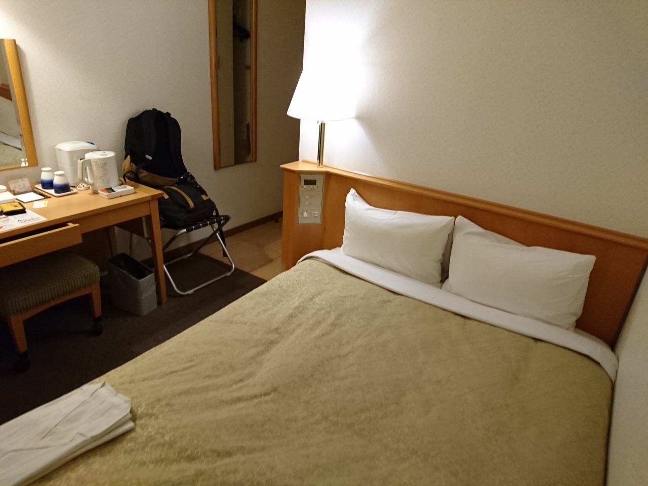 経営が変わりスマイルグループになったということで、リブランド記念でとても安く泊まれた。しかし、通常料金でも十分コスパは高いと思う。特に部屋は通常のビジネスホテルと同様14㎡ほどだが、ベッドの広さがダブルサイズでゆったりしている。ハードとしては申し分ないが、朝食は少しレベルが低い。有料ならばもう少し工夫が必要と思われる。