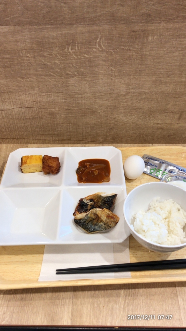 朝食の品数は少ないがとても美味しい、唐揚げも油臭く無く体調が良ければ5個はいける。
