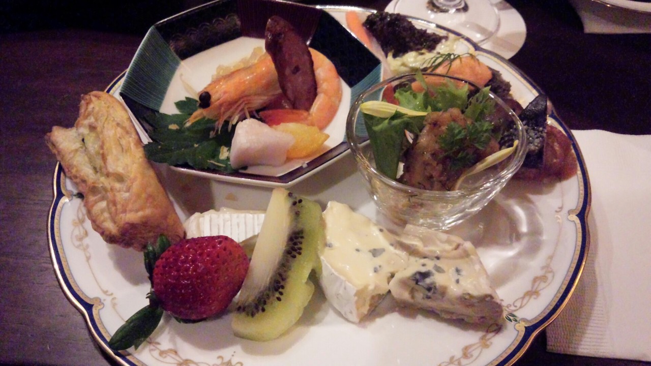 17時~のカクテルタイムでスパークリングワインや高級ウイスキーの響のサービスをゆっくりと楽しめました