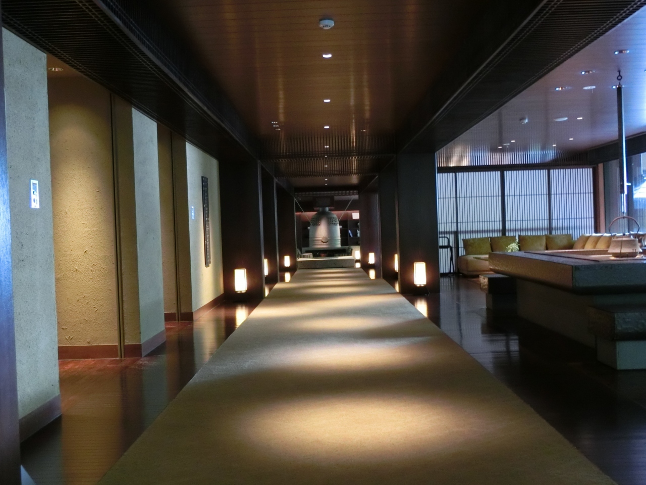 木彫りの重厚なドアが開くと長い通路の先には南部鉄の巨大な鐘に圧倒されました。