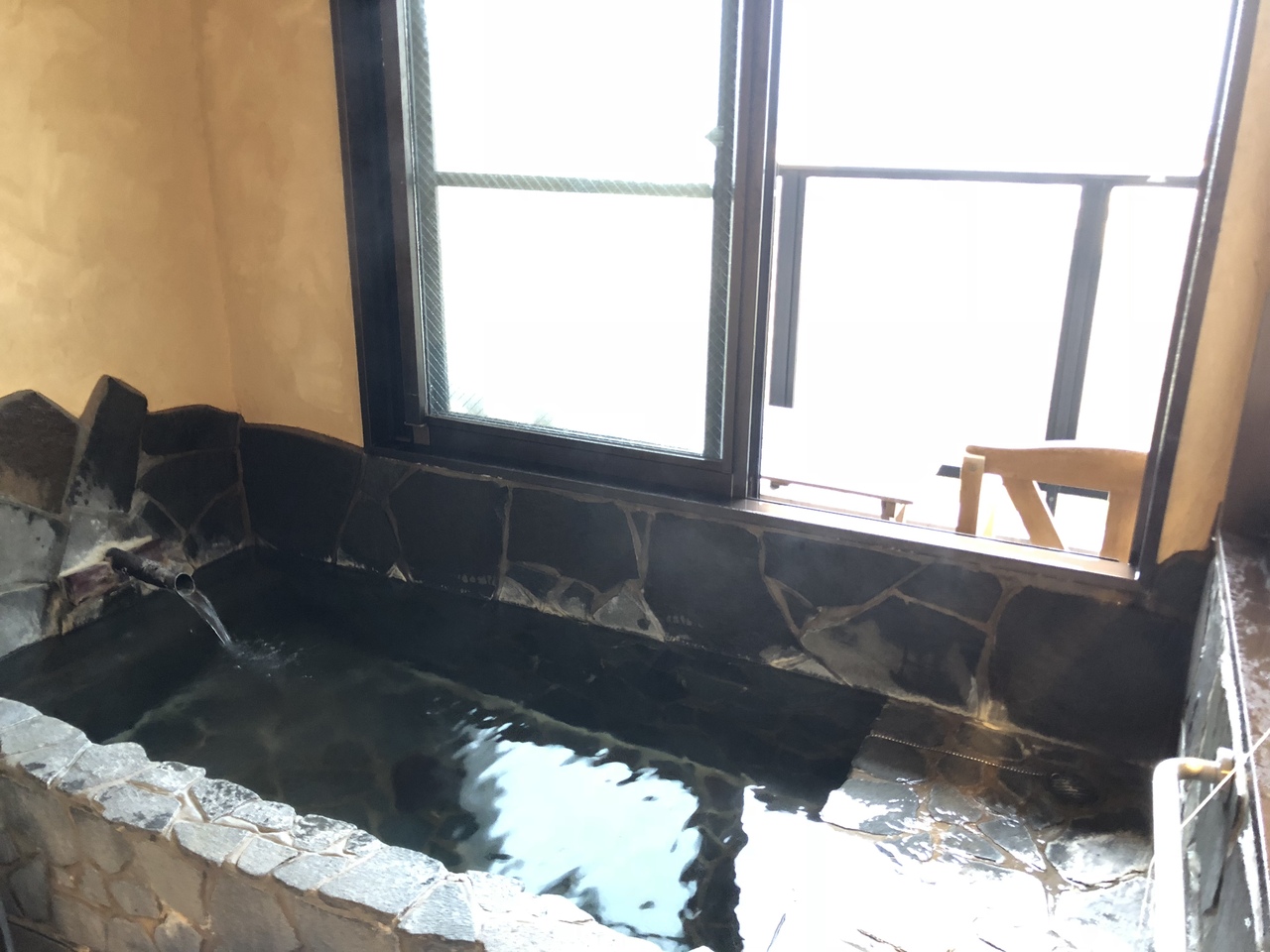 こちらの旅館、全部屋に源泉掛け流し展望風呂が付いており、好きな時に温泉を楽しめます。大人専用なので、館内も静かです。