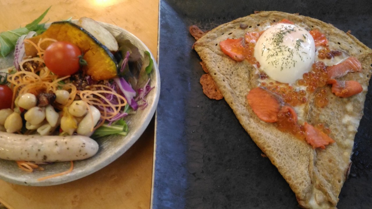 まずは、温泉があるホテルというので人気が高いらしいのですが、それよりすごいと感じたのは、このそば粉のガレットの朝食です。