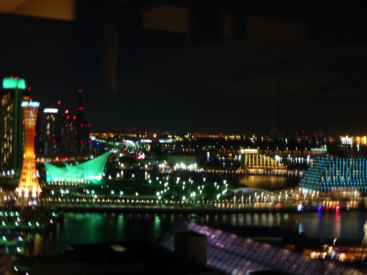 宿泊したのは最上階の和洋室で神戸ベイエリアの夜景が一望でき、とても贅沢な眺望でした。