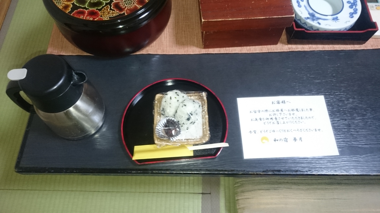 夕食を食べている間に布団を敷いてくれたのですが、夜食のおにぎりまで用意してありました。