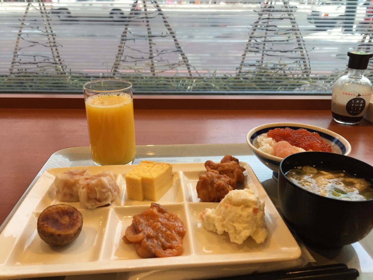 地下鉄駅すすきのから、徒歩1分です。すすきのや大通りの様々な飲食店に歩いて移動することができるだけ、ビジネスや観光目的など、あらゆる用途で都合の良いロケーションだと思います。荷物が少なければ地下鉄移動が便利ですが、札幌駅までの無料シャトルバスなども出ているようなので、それを利用するのも良いかと思います。また、連泊する場合はエコパックとやらで、客室清掃•タオルシーツ交換を断ることで、1500円分の無料朝食券が貰えます。ビュッフェ形式の朝食は和洋美味しいです。