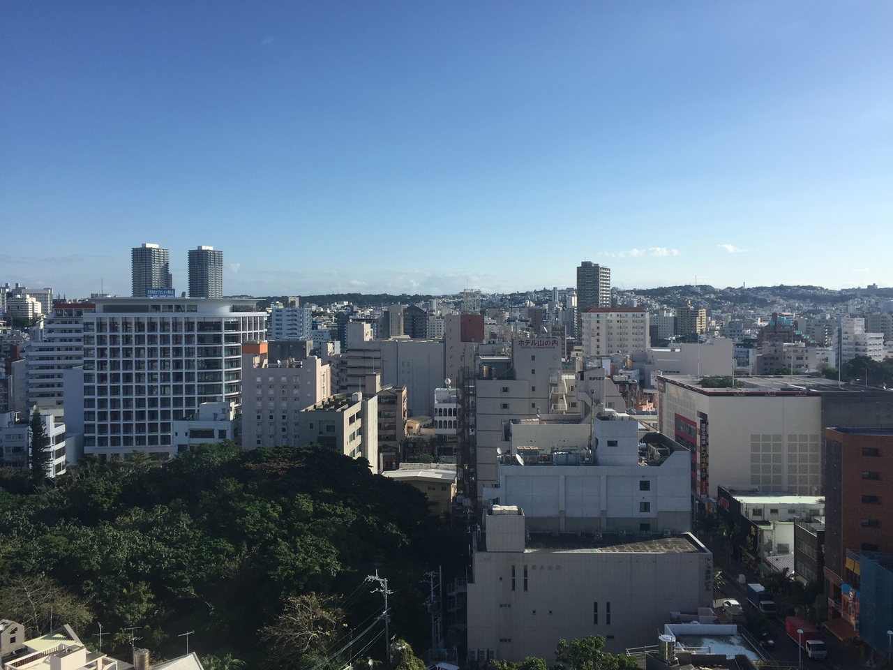 国際通りに面しているのはいいが、ゆいレールの美栄橋駅から裏道を使っても7、8分、牧志駅からだと10分くらいとやや不便。那覇空港までタクシーで1,700円くらい。立地が中途半端。フロントの対応はまずまず。ちなみにワンハーモニー会員特典のグレードアップを受けたが、ほとんど変わらない部屋であった。