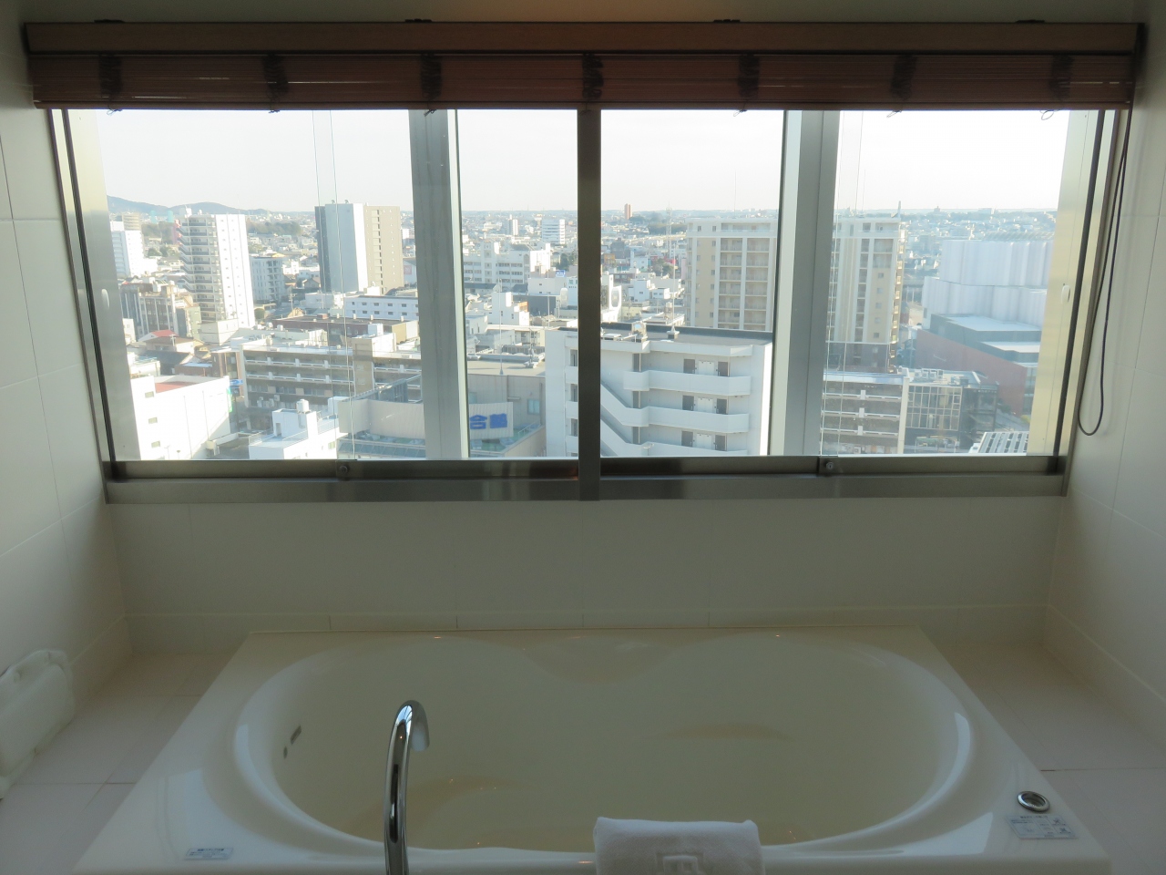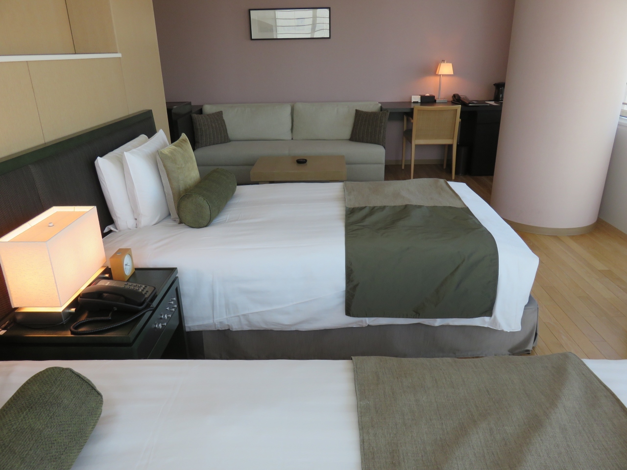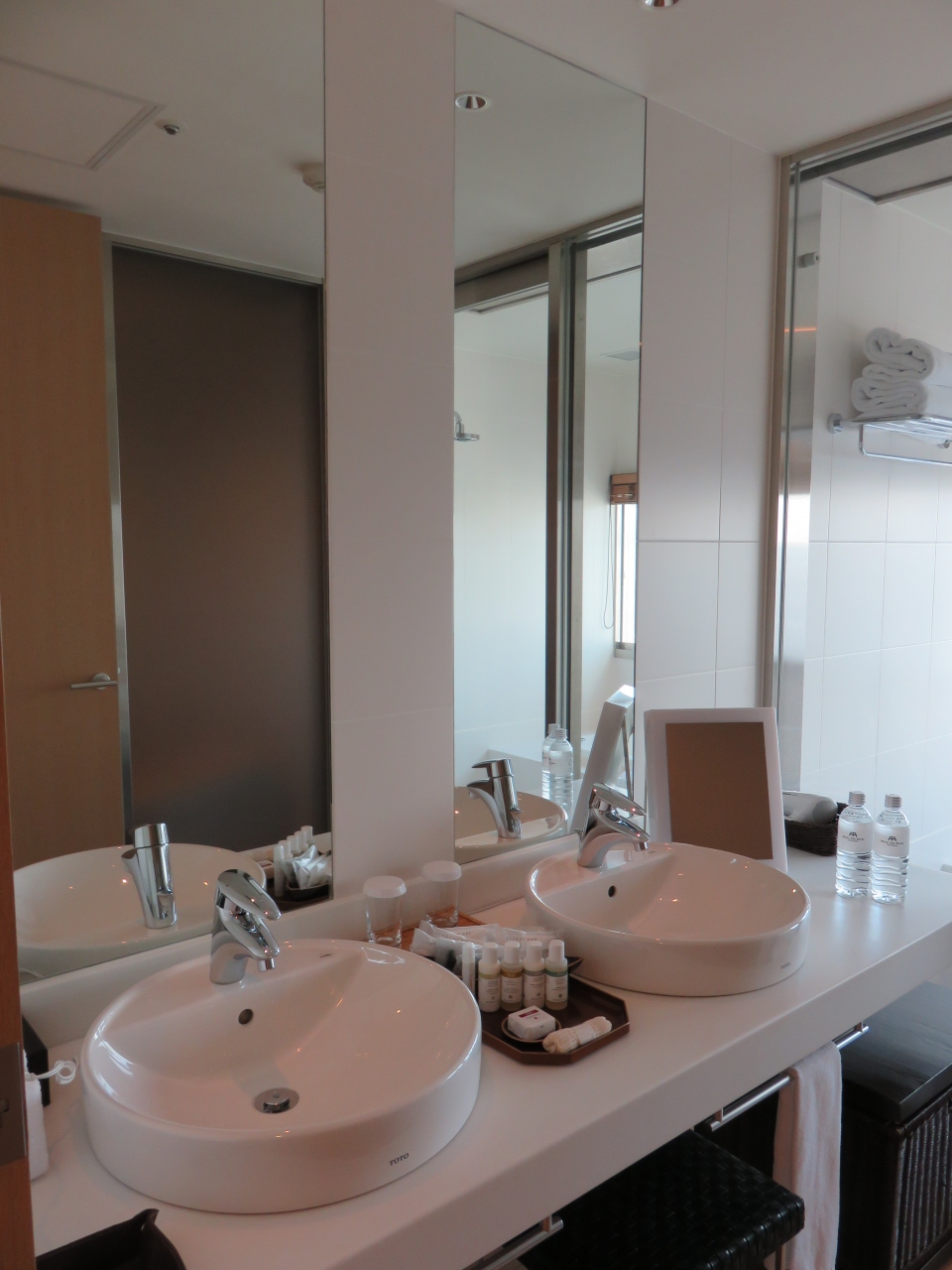 お部屋は角部屋で2面ガラス張りで解放感があり、お部屋全体もゆったりしていました。洗面所はダブルシンクで、洗面所、バスルーム、WCがそれぞれ独立していたのは嬉しく、バスルームに窓があり明るかったです。