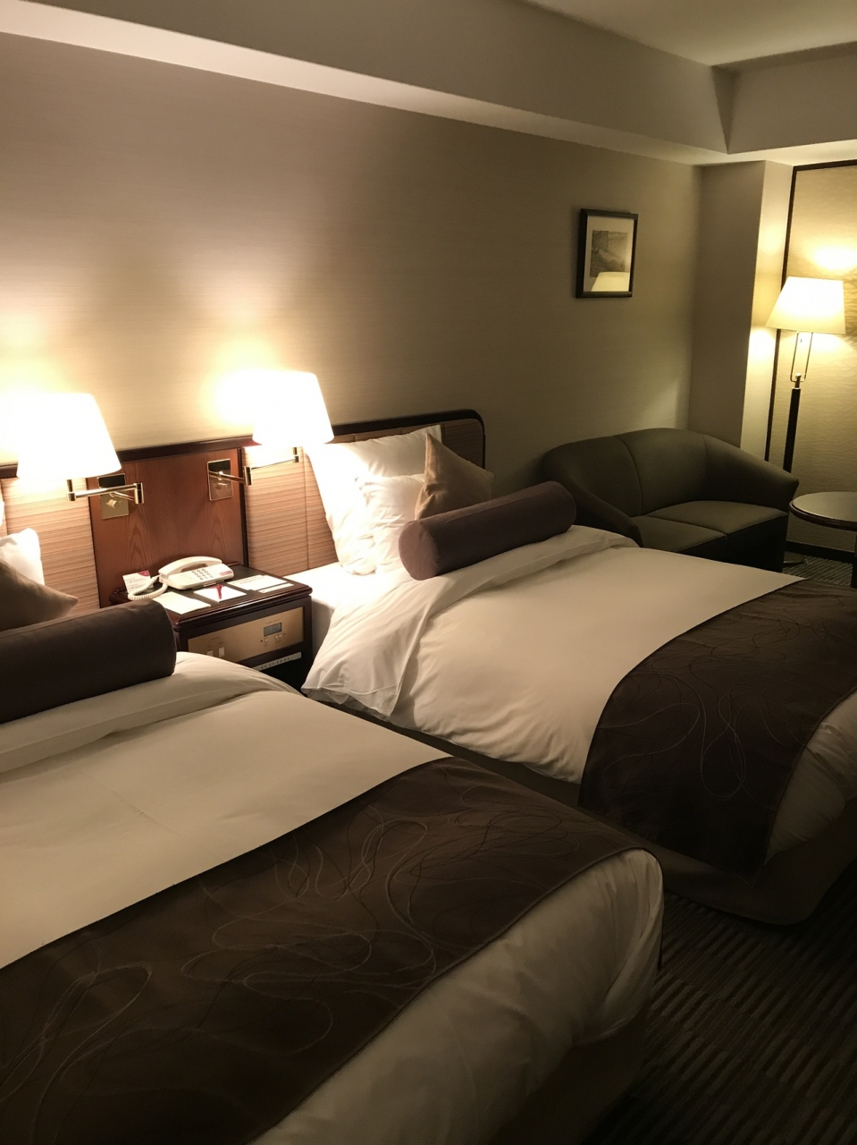 ベッド、リネンはいいもので、部屋に加湿機能つきの空気清浄機もありました。