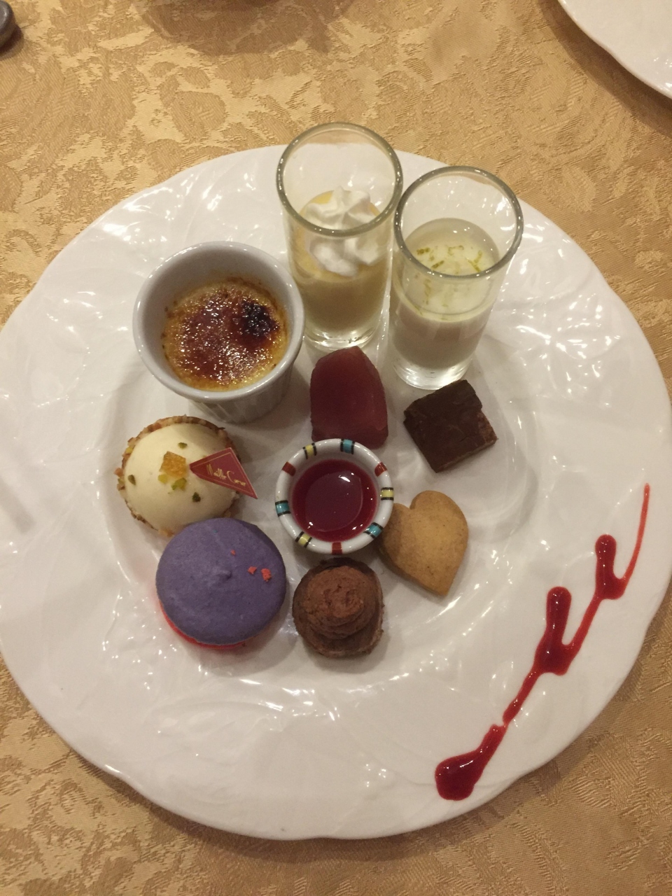 口コミで評判が良かったので宿泊しました。3階のお部屋でした。洋室で2人なら十分な広さでした。朝食夕食ともに、2階のレストランで頂きました。朝食は、ブッフェスタイル。どこにどんなお料理があるのか書いてあるパンフレットがありました。夕食は、一皿一皿、サービスして下さり、ゆっくり美味しく頂けました。器も素敵でした。前菜の盛り合わせとデザートの説明が、かわいいイラストになっていて良かったです。10種類のデザートは、選び放題でした!