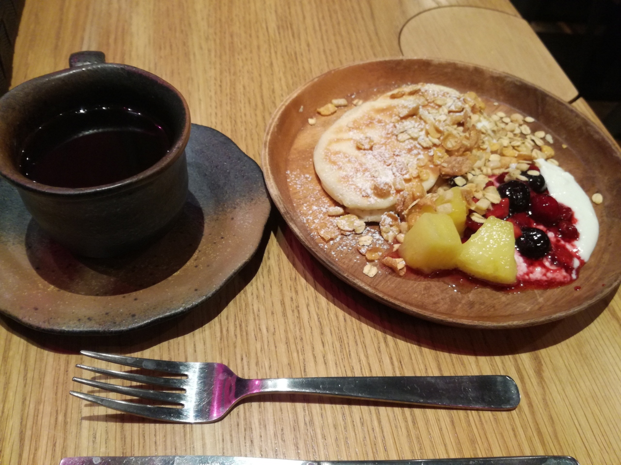 朝食はパンケーキとシリアルか和食で選べました。写真のパンケーキのほうがおいしかったです。