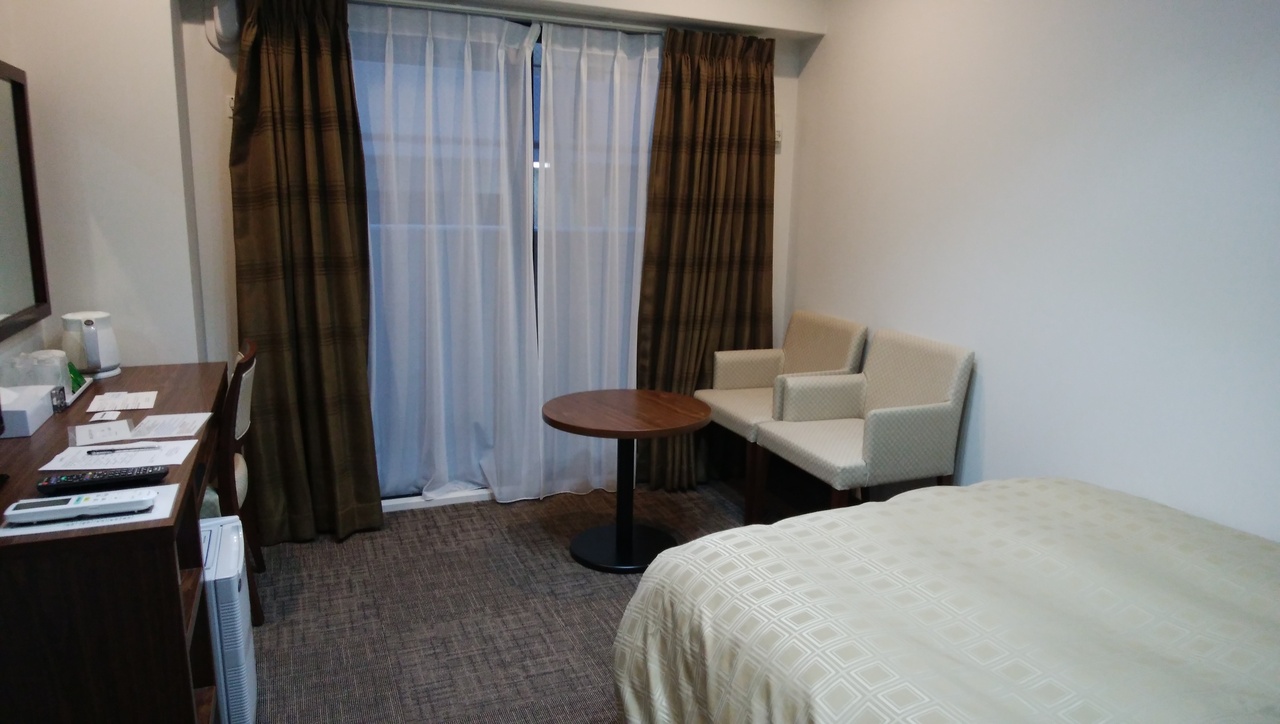 部屋はまんまワンルームマンションです。レディースルーム予約でしたのでチェックインの際に女性用アメニティグッズが入った袋をもらいました。別館とのことで、連絡通路を通り、部屋に着きました。部屋は質素ですがきれいで関空前泊利用としては十分です。コンビニが近くなく駅まで行きます。夜は人通りが少ないです。