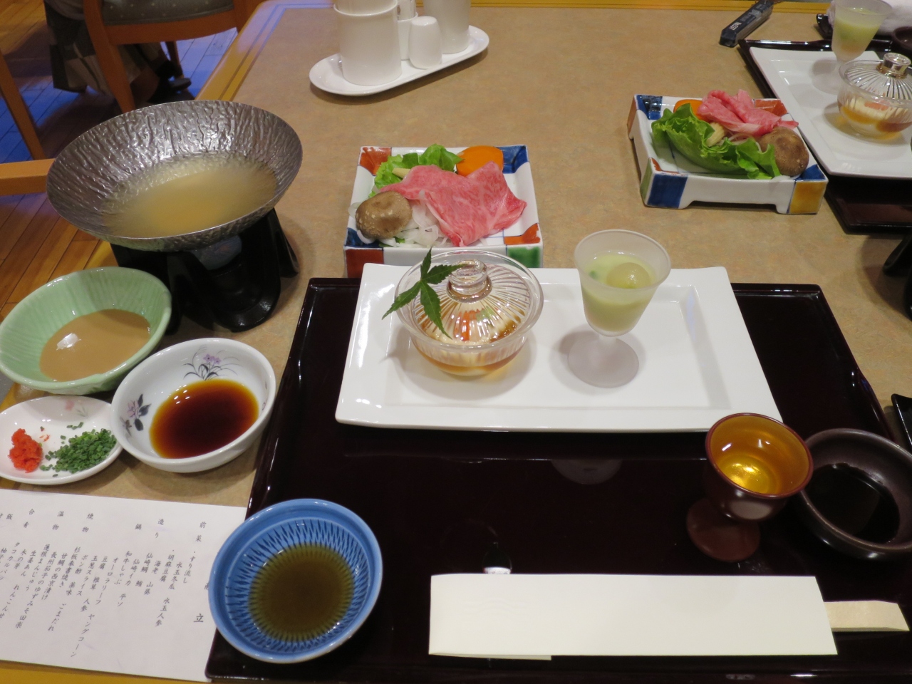 外郎とお抹茶をいただいてから、お部屋へ。畳と広縁との段差につまづく危険を感じた以外は、清潔で快適でした。