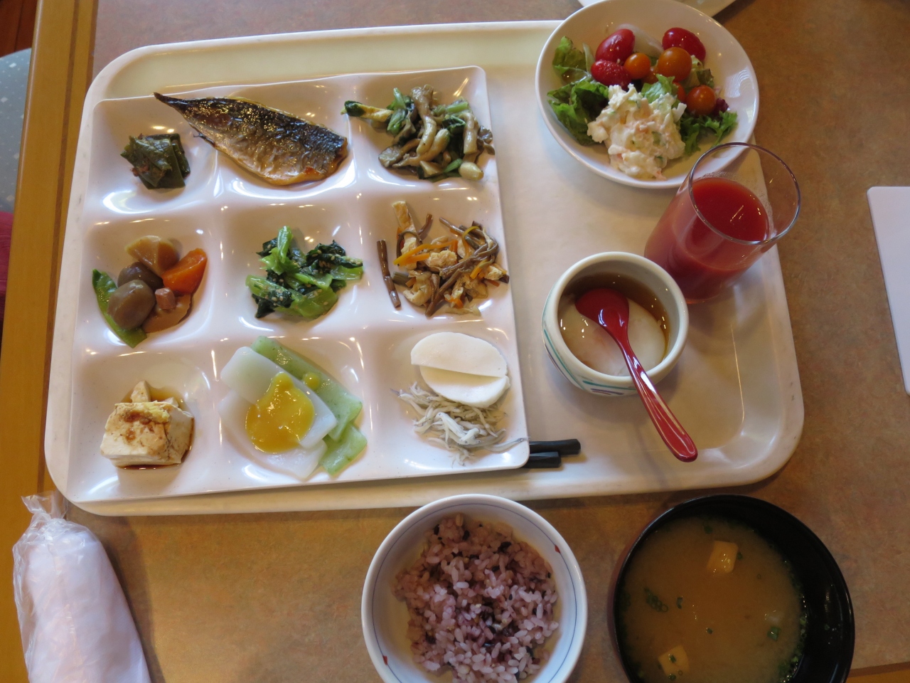 「地元産の食材を中心に50種以上の充実したメニュー」だそうです。焼き立てオムレツやヨーグルトの夏みかんソースが美味しゅうございました。
