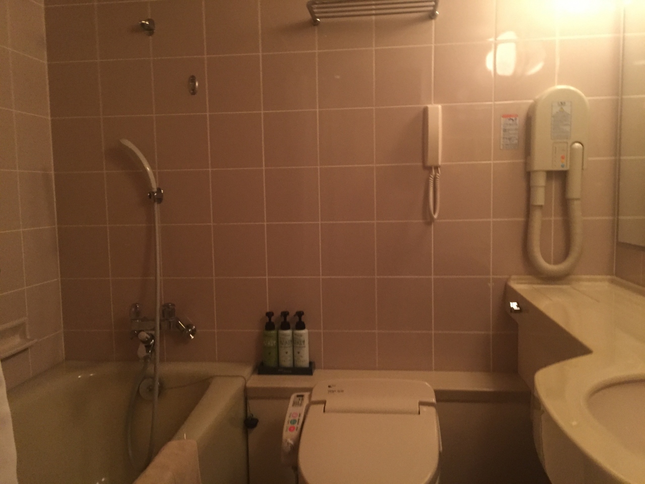 部屋は広くて明るく、バスルームも広いです。女性は大浴場が使えないのが残念ですが、DHCのアメニティーをくれます。部屋は浴衣、バスタオル、タオル、ドライヤー、冷蔵庫、れテレビ、湯沸かしポット、お茶セットがあります。お茶は粉茶です。
