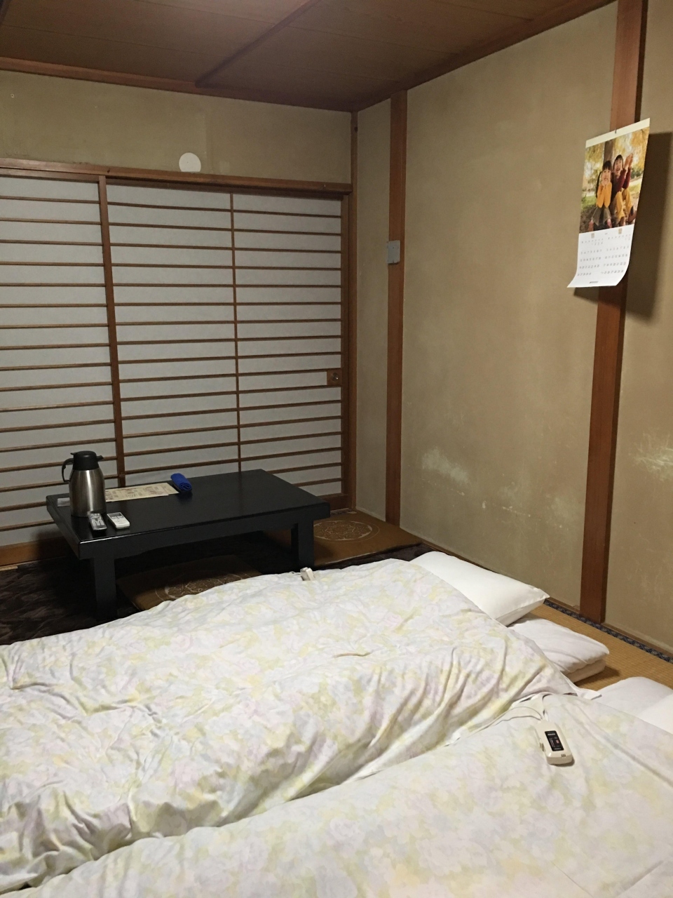お部屋は綺麗で、エアコンがついていて暖かく、布団には電気毛布も敷かれていました。