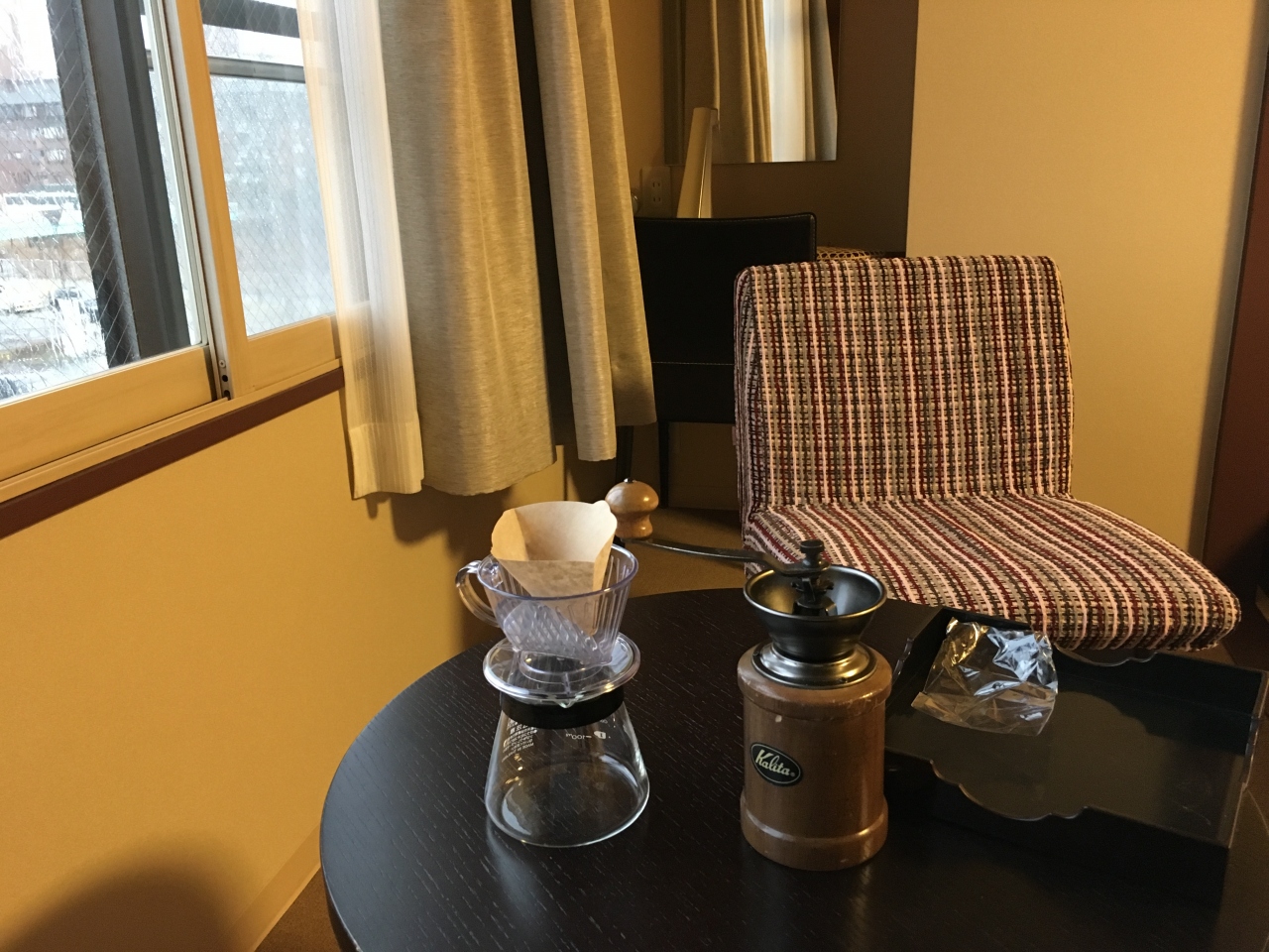 お部屋には、コーヒーミルと豆が用意されていて、朝食後ゆっくりと、お部屋でコーヒーを飲むこともできて良かった。
