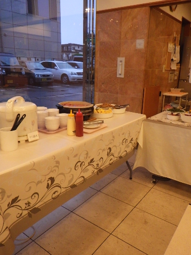 朝食時間は6時半から9時。バイキング形式となっている朝食のメニューは、そう凝ったものに感じず、種類もそう多くはなかった。が、旅行なので、寧ろ簡単な方が有り難い(ただ、山形駅周辺はこのホテル以外に朝食の場が無いので、少しはガッツリ食べても大丈夫の様である)。セルフサービスなので、使用したトレーや食器類は、利用者が返却口まで持って行く。