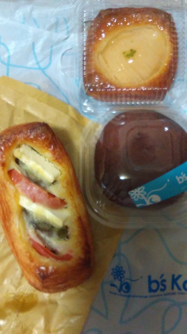 甘いデニッシュや野菜を使ったデニッシュ、冬だけど冷たいプレミアムクリームパンを購入