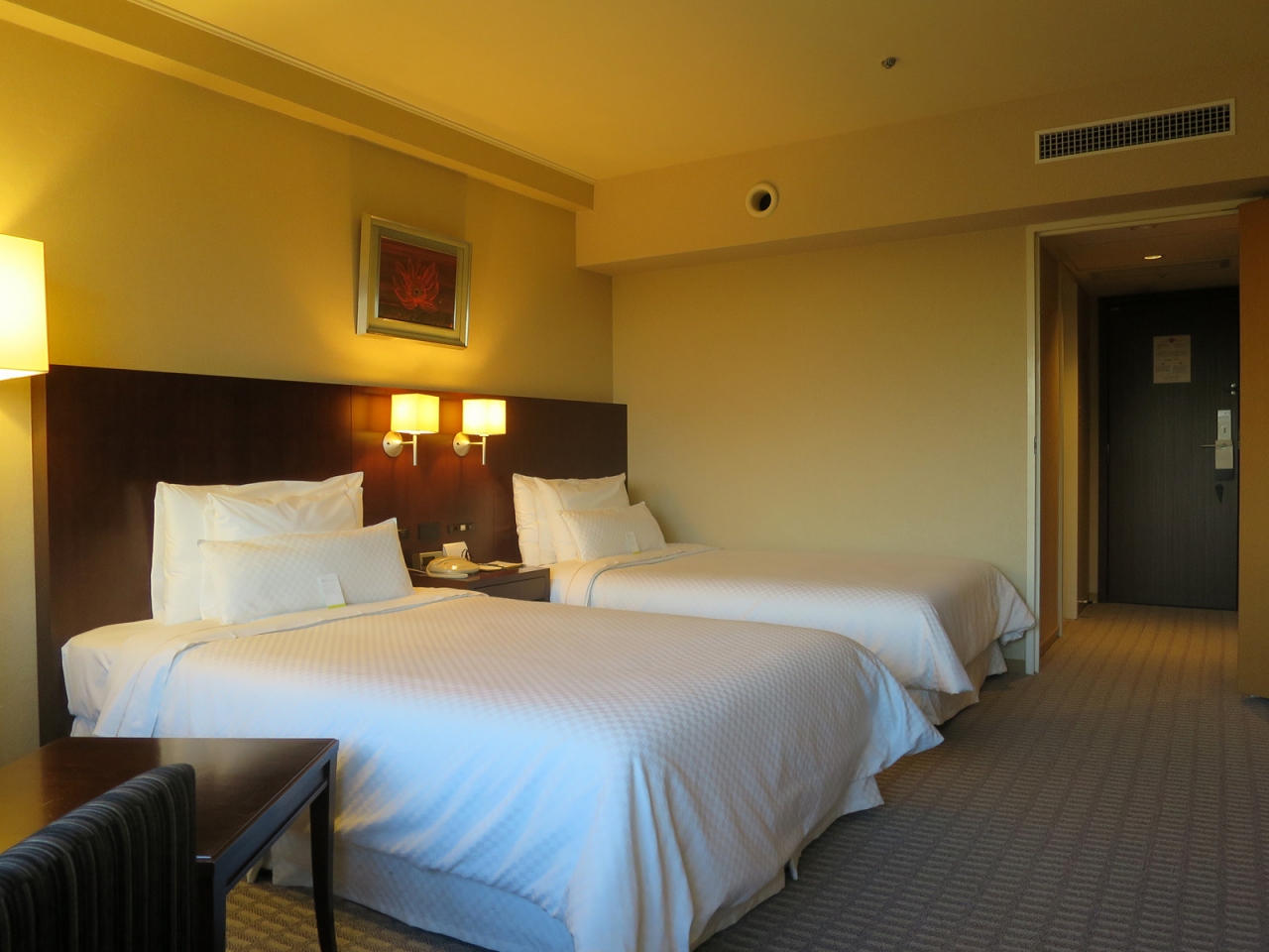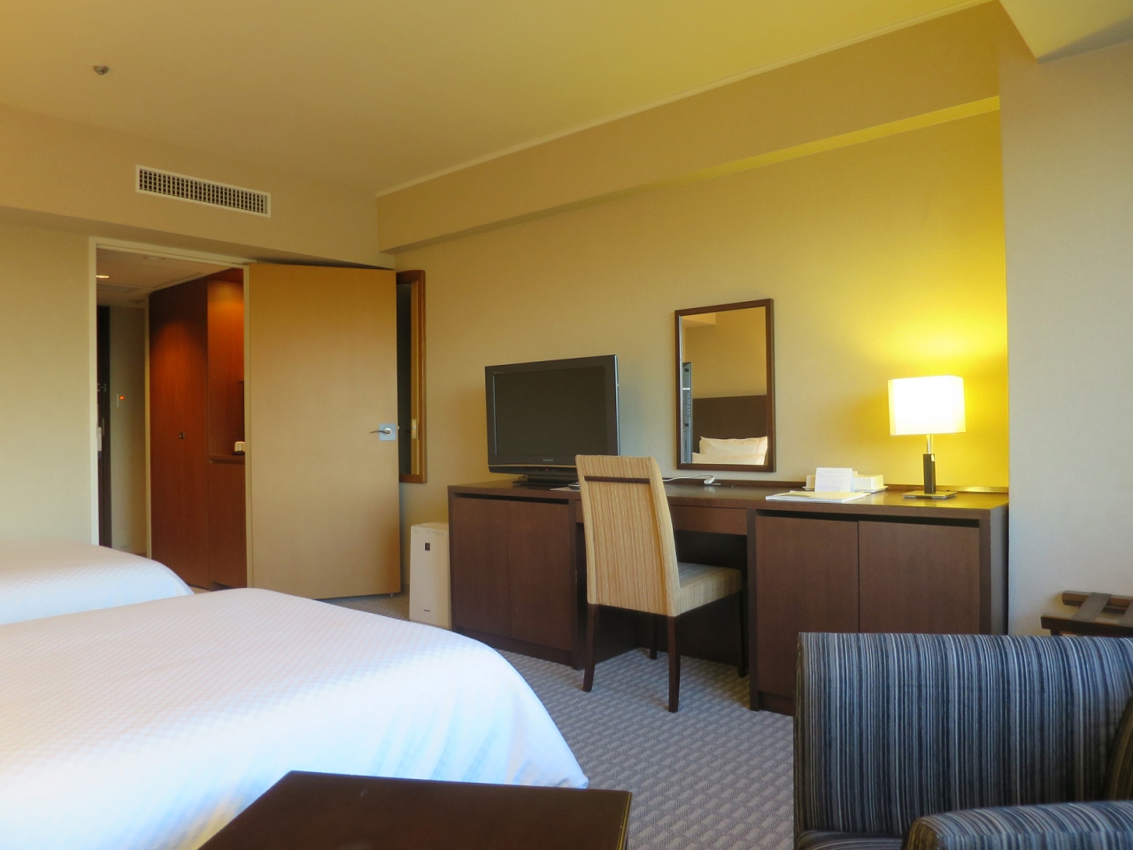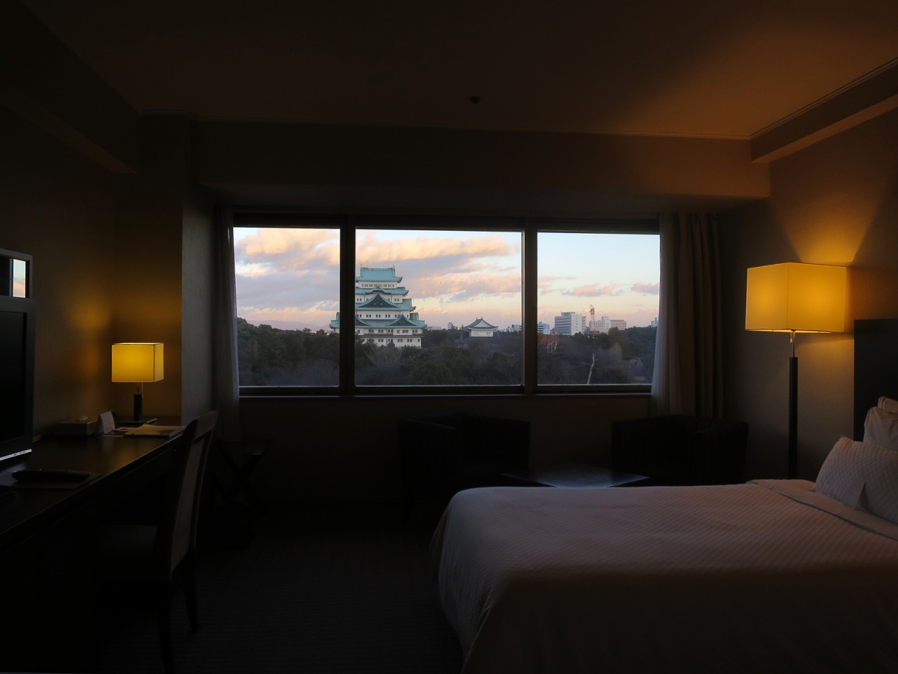 - アサインされたのはキャッスルサイドのスタンダードツイン、落ち着いたデザインで広さも十分、目の前の名古屋城天守閣と濃尾平野のスカイラインは絶景