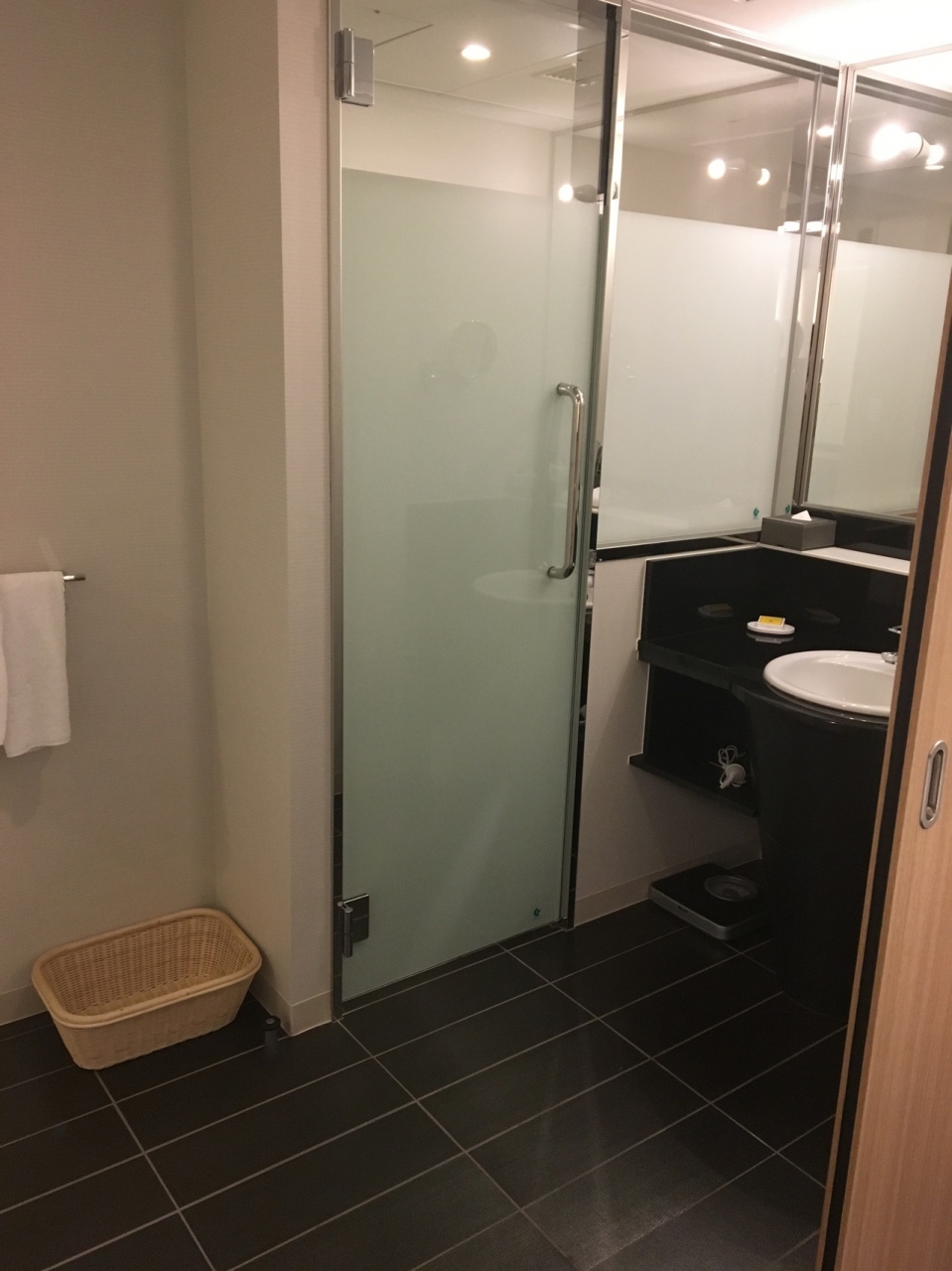 宿泊した部屋は、入口部分にかなりの圧迫感がある位、通路が狭いし暗い。