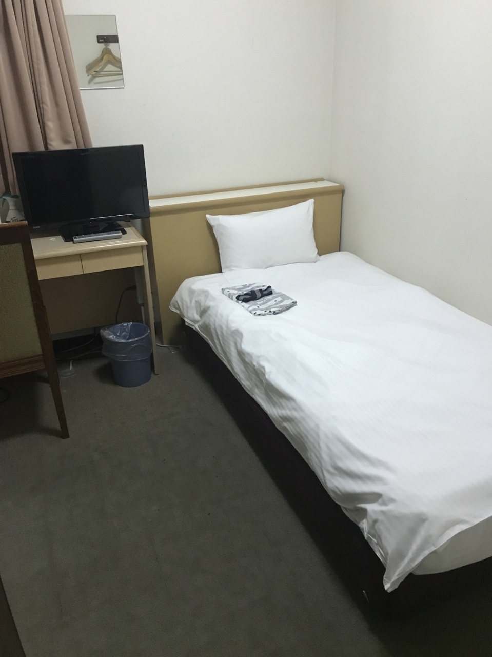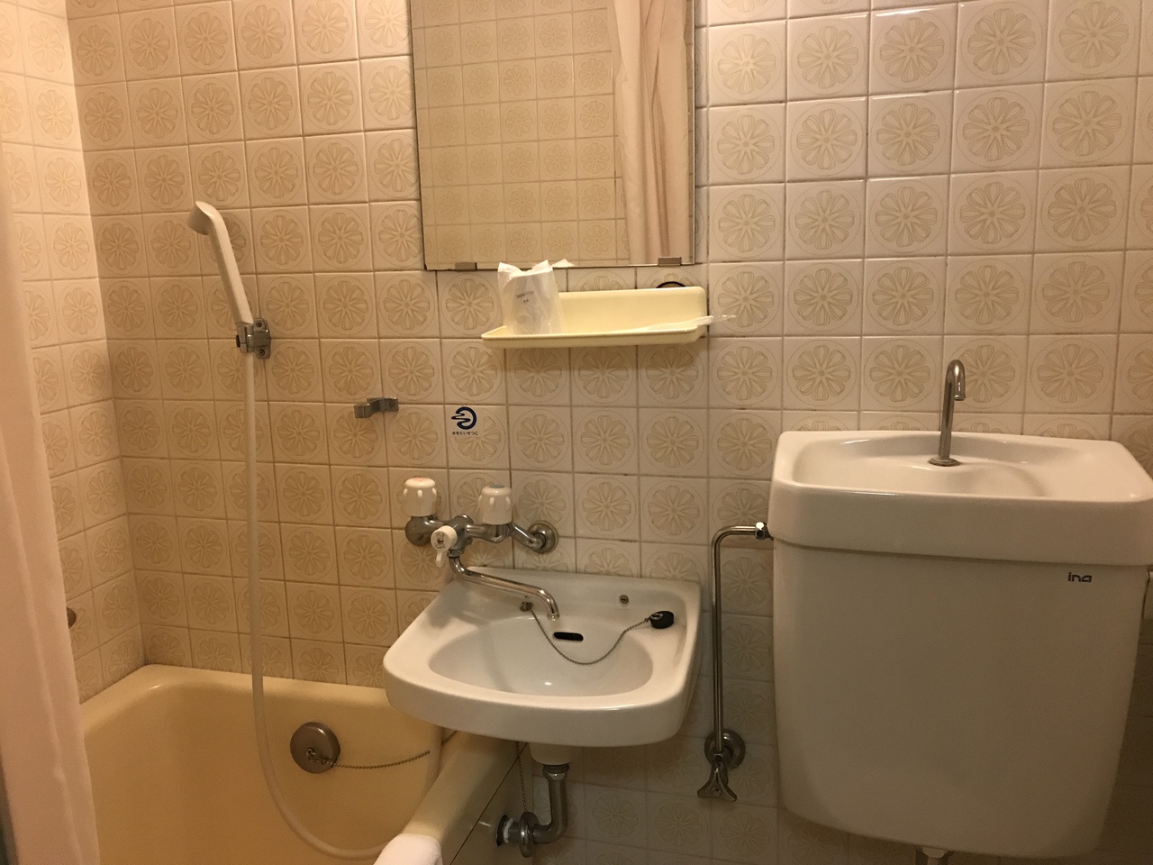 部屋は昔のビジネスホテルな感じ。ユニットバス。